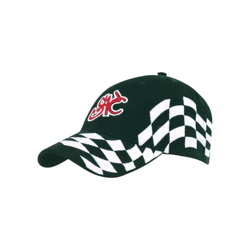Werbe-Basecap aus dicker, gebürsteter Baumwolle mit sichtbarem Schachbrett-Stickmuster. Strukturierte 6-Panel-Basecap mit vorgeformtem Schirm. Verschlussart – Stoffband mit Metallschnalle. Stoffgrammatur – 270 g/m2.